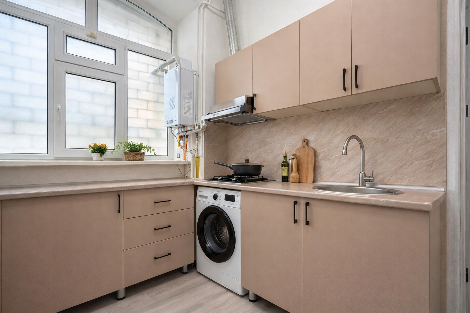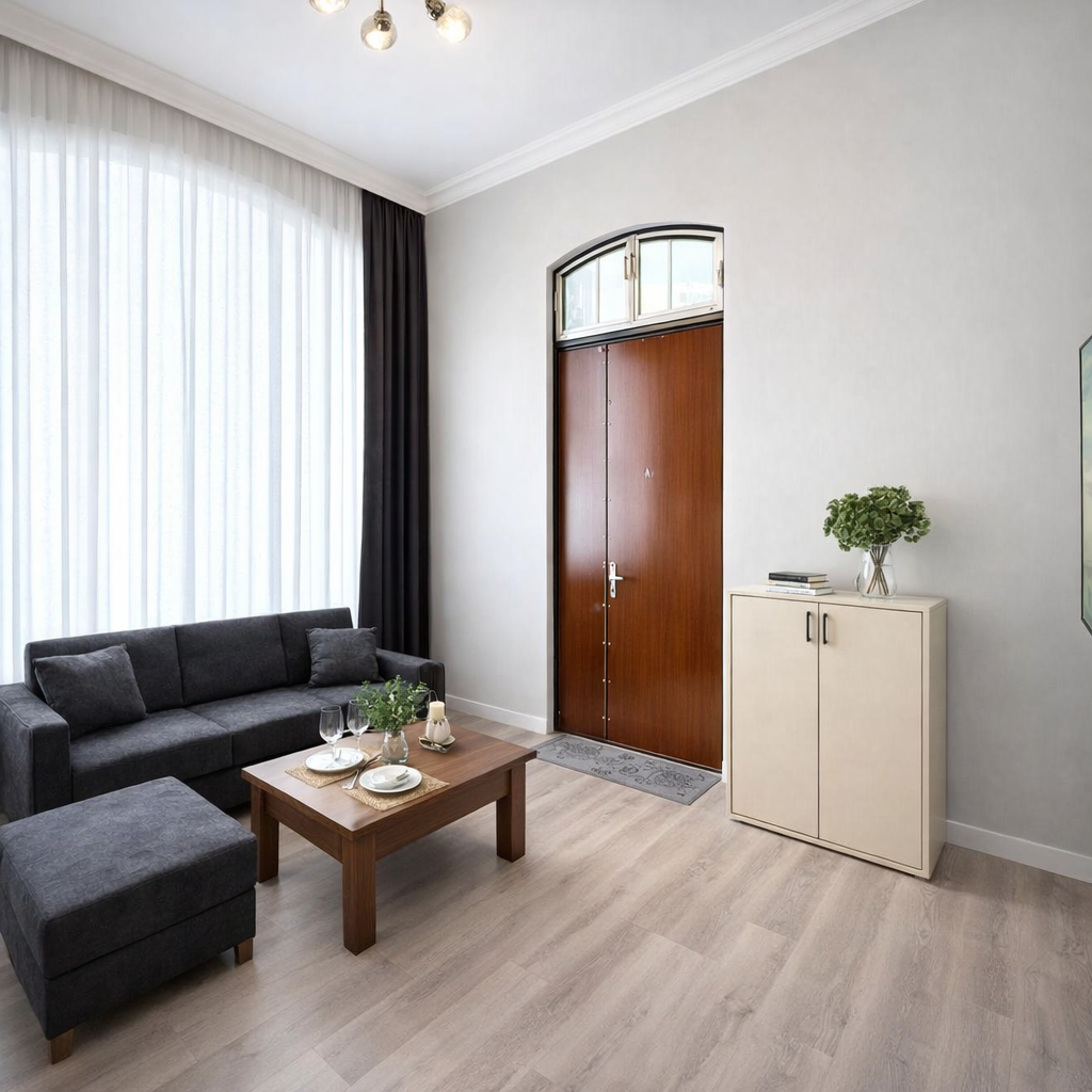Discover your serene sanctuary in the heart of Baku! This newly renovated, minimalist ground-floor suite is a quiet retreat just moments from 28 Mall. Perfect for up to 4 guests, it offers a stylish base with a King bed, sofa bed, and full kitchen. Ideal for short trips or long-term stays, with seamless self-check-in and high-speed Wi-Fi.